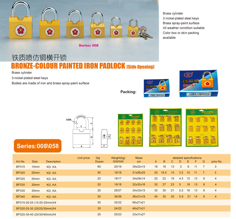 BRONZE-COLOUR PAINTED IRON PADLOCK(Latral opening)